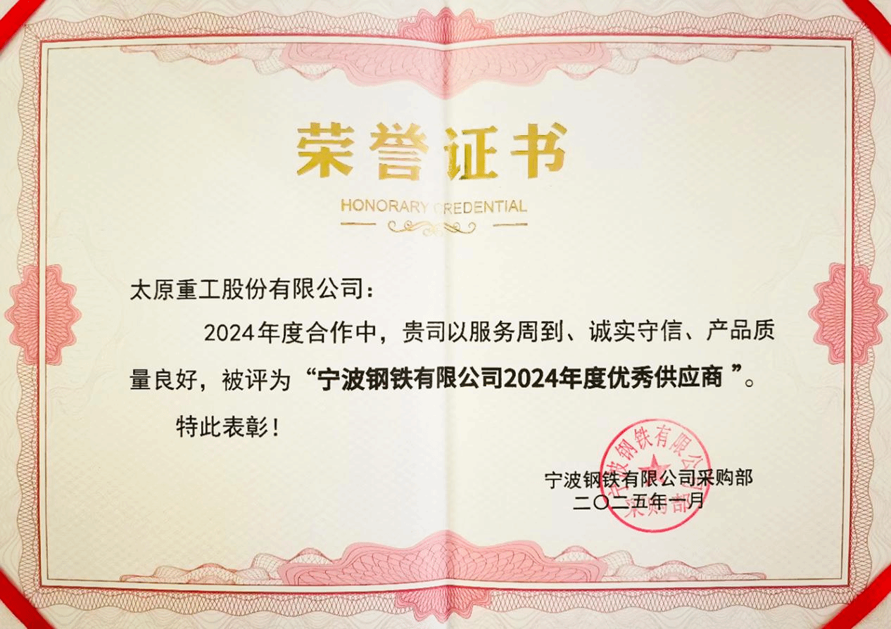 近日,憑借頂尖的技術實力、過硬的產(chǎn)品質(zhì)量、優(yōu)質(zhì)的用戶服務,太重榮獲“寧波鋼鐵有限公司2024年度優(yōu)秀供應商”稱號。值得一提的是,公司已連續(xù)四年獲得此項榮譽,成為用戶供應商體系中的典范。